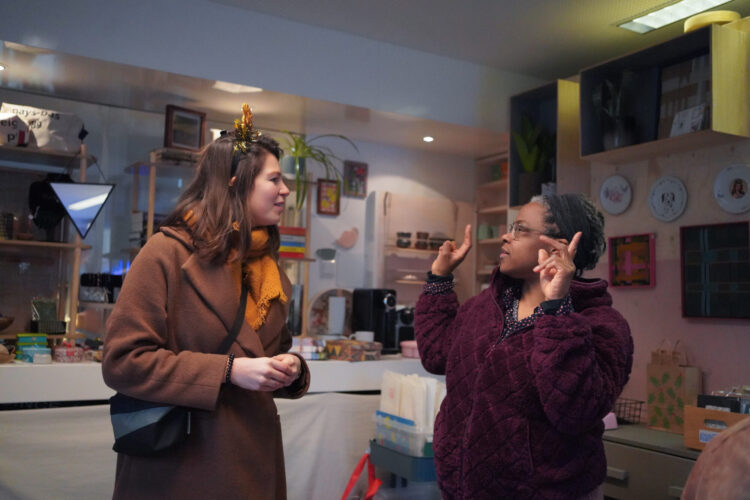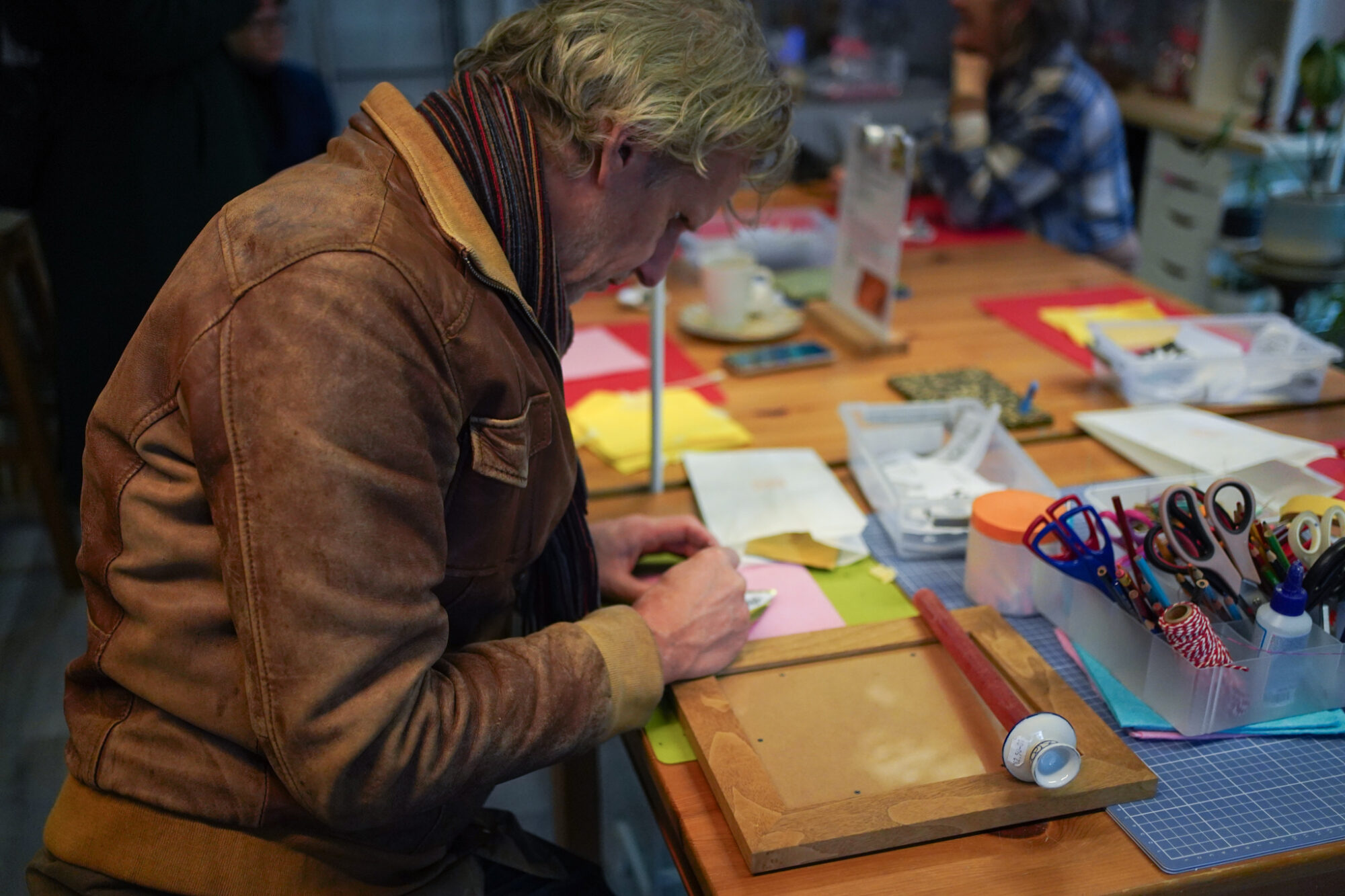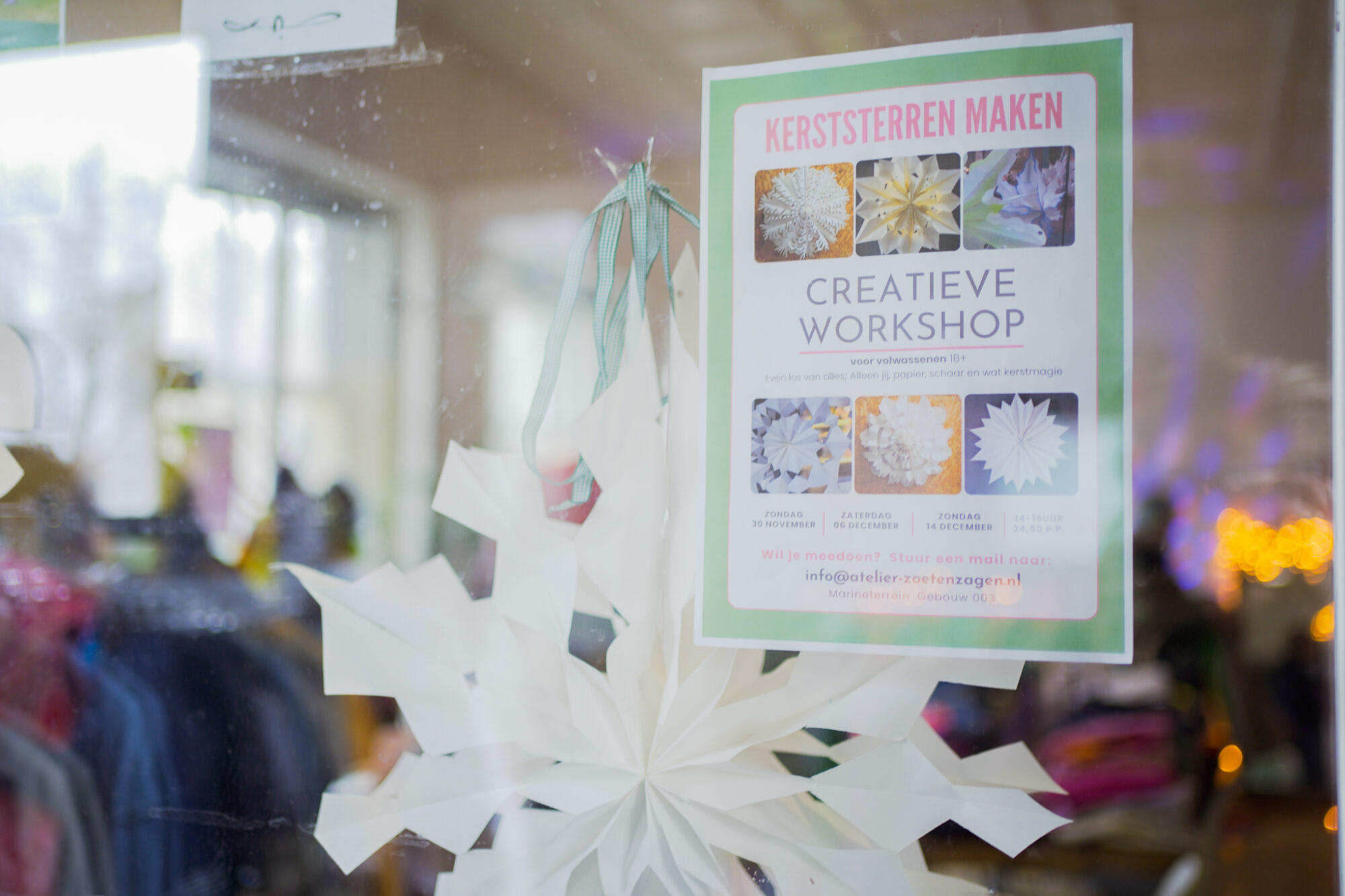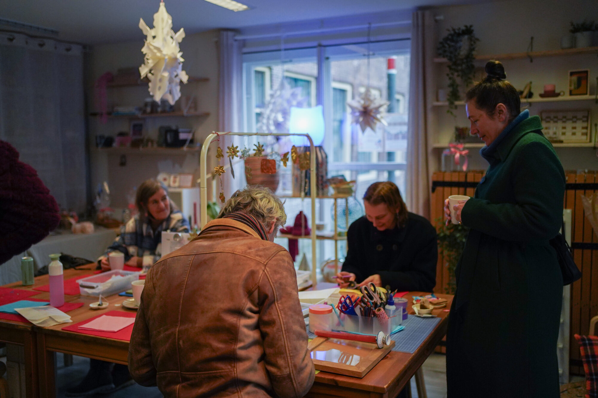 In Atelier Zoet & Zagen werden doorlopend kerstworkshops georganiseerd. Van 12:00 tot 15:00 uur maakten kinderen en volwassenen samen glinsterende kersthangers.