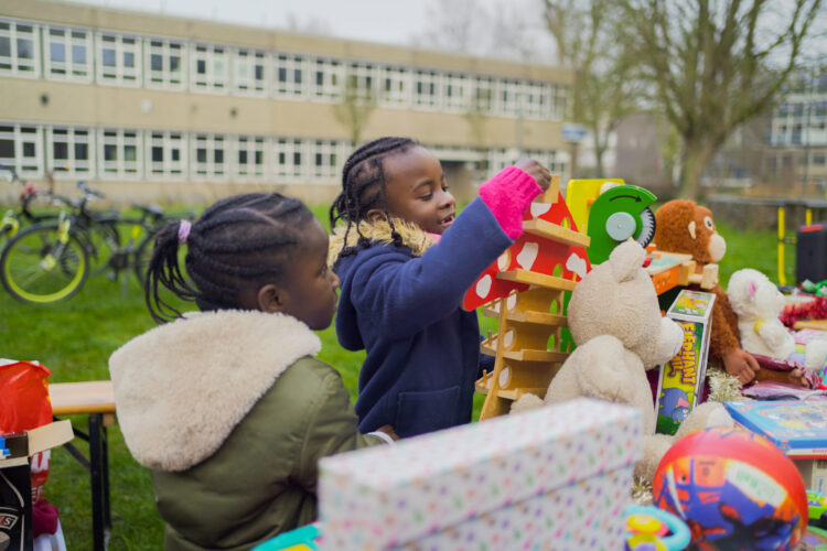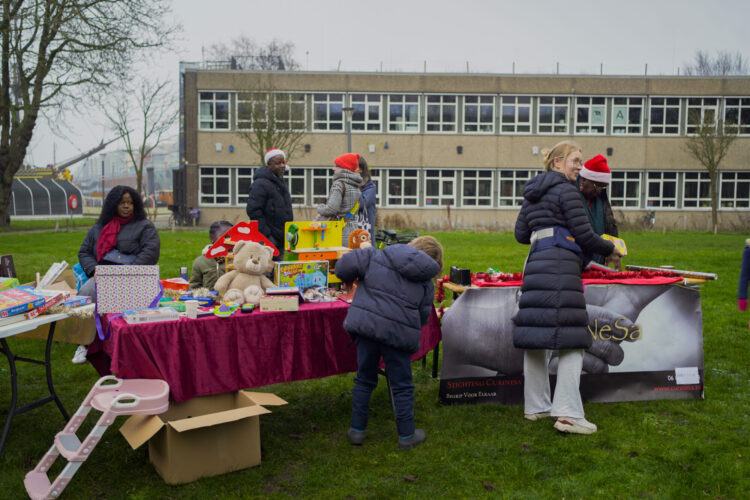 Onder de grote kerstboom op de voorwerf lagen cadeautjes voor kinderen die ter plekke uitgekozen en feestelijk werden ingepakt. De cadeautjes werden uitgedeeld in samenwerking met Curinesa en Swapshare.