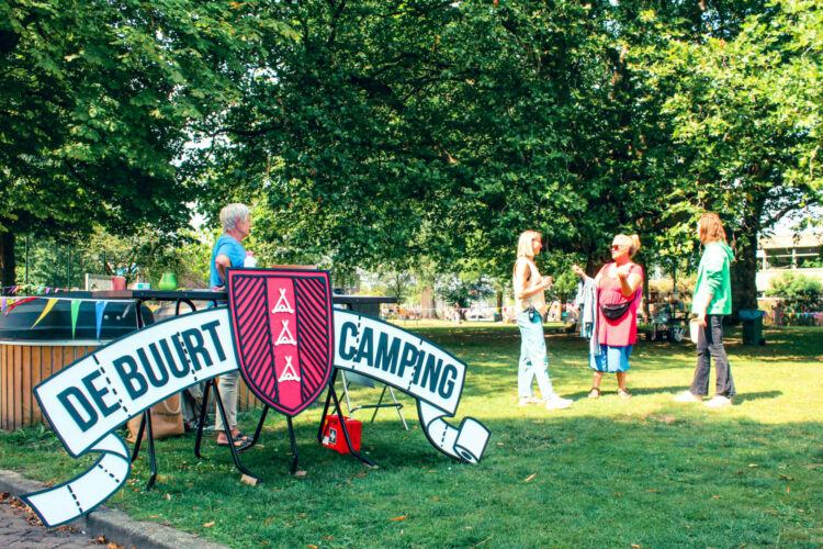 Tijdens De Buurtcamping Amsterdam Marineterrein wordt het park drie dagen lang een gezellige camping, bewoond door alle mensen die de buurt rijk is. Op een camping ben je de hele dag heerlijk buiten en is iedereen gelijk. Met die pleerol onder de arm zien we er per slot van rekening even knullig uit. Je groet de buurvrouw en helpt elkaar een handje.