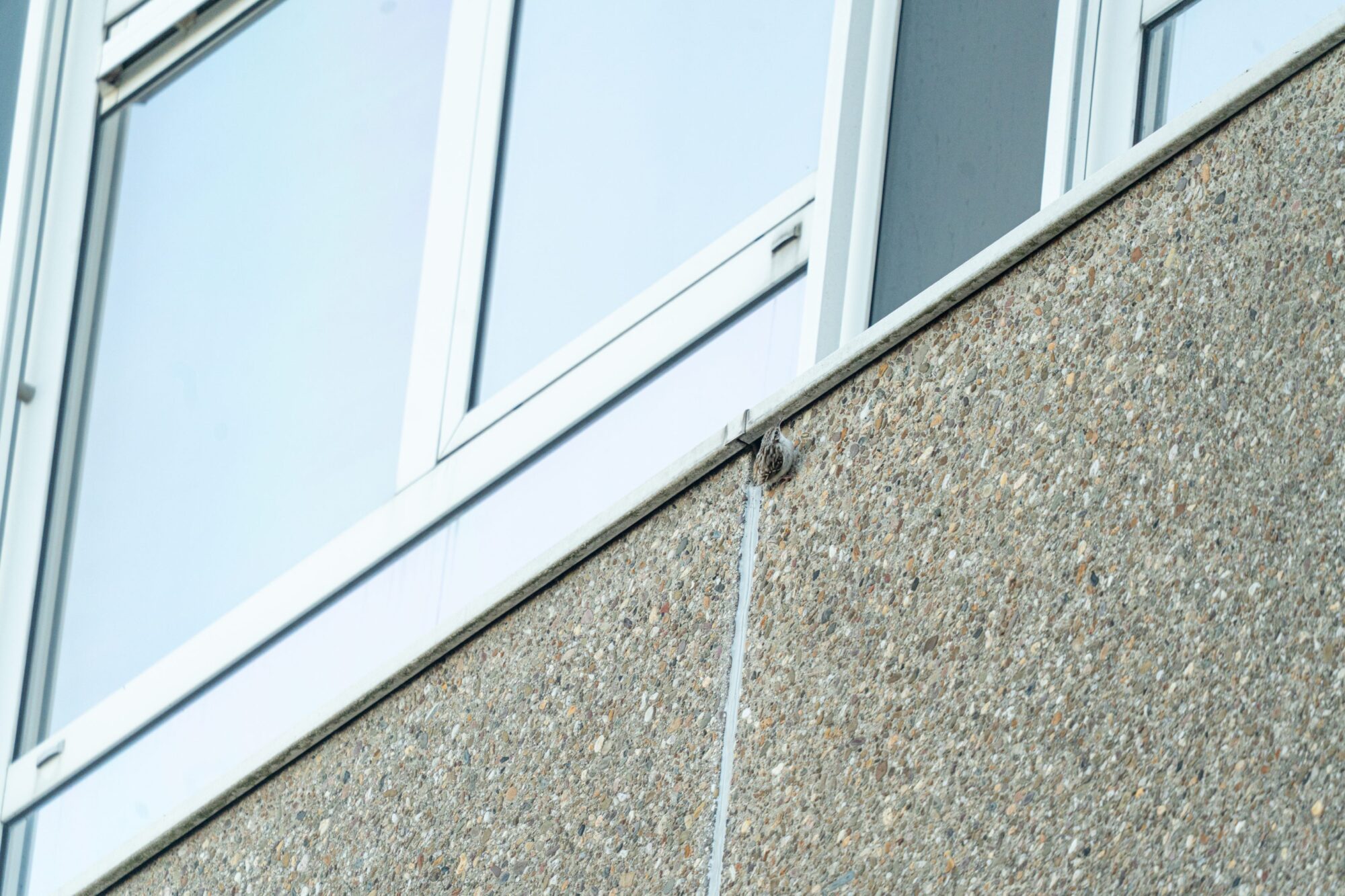 Langs de buitenmuur klom een boomkruiper omhoog. Boomkruipers zijn kleine vogels die kenmerkend alleen naar boven klimmen. Naar beneden gebeurt uitsluitend via een korte vlucht.