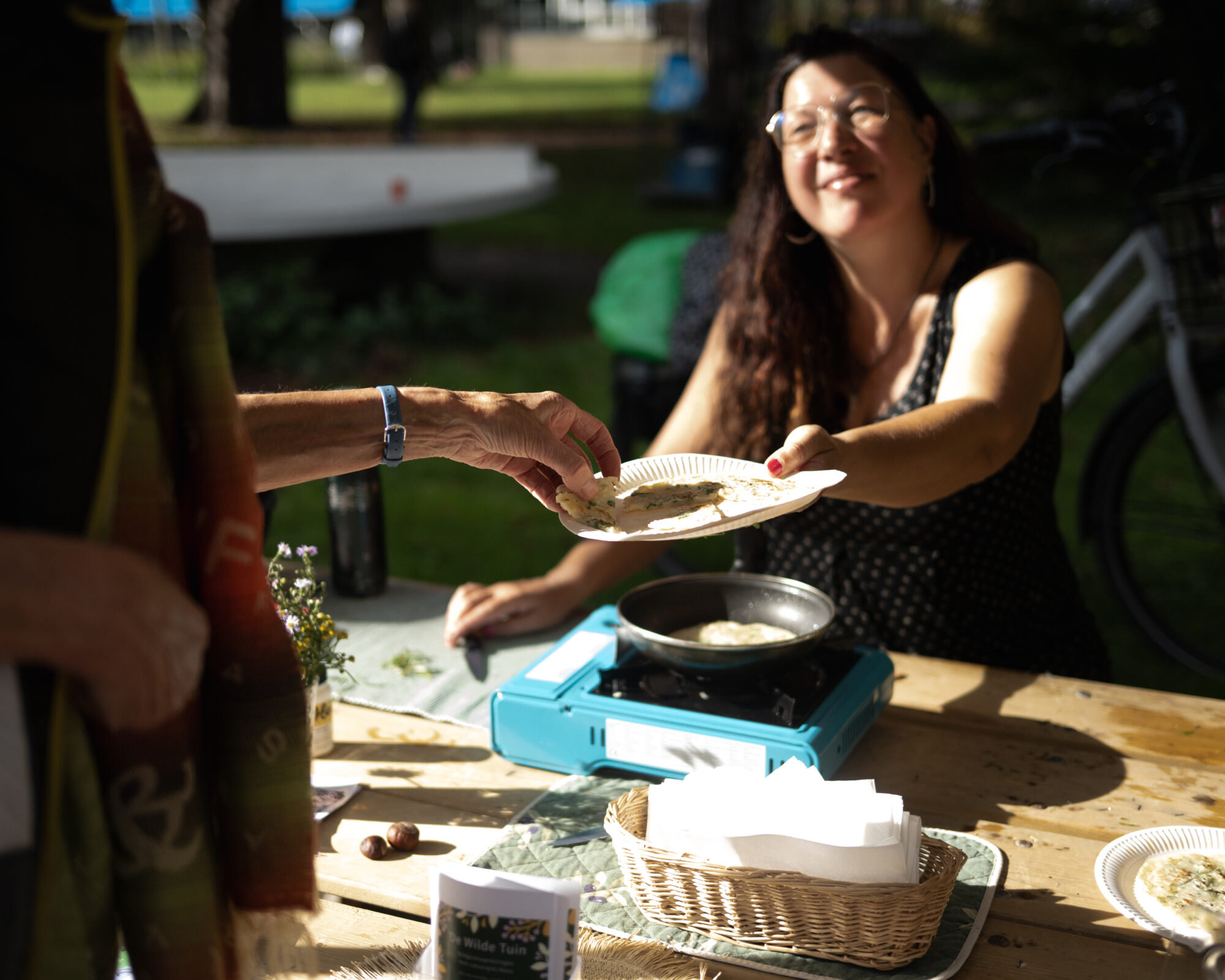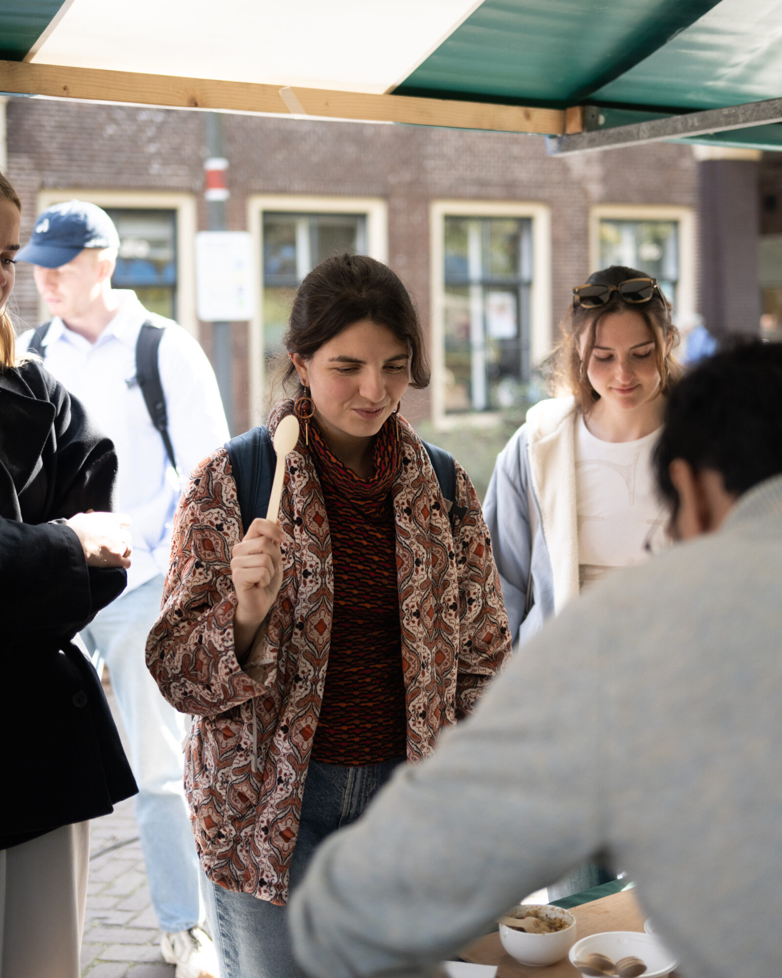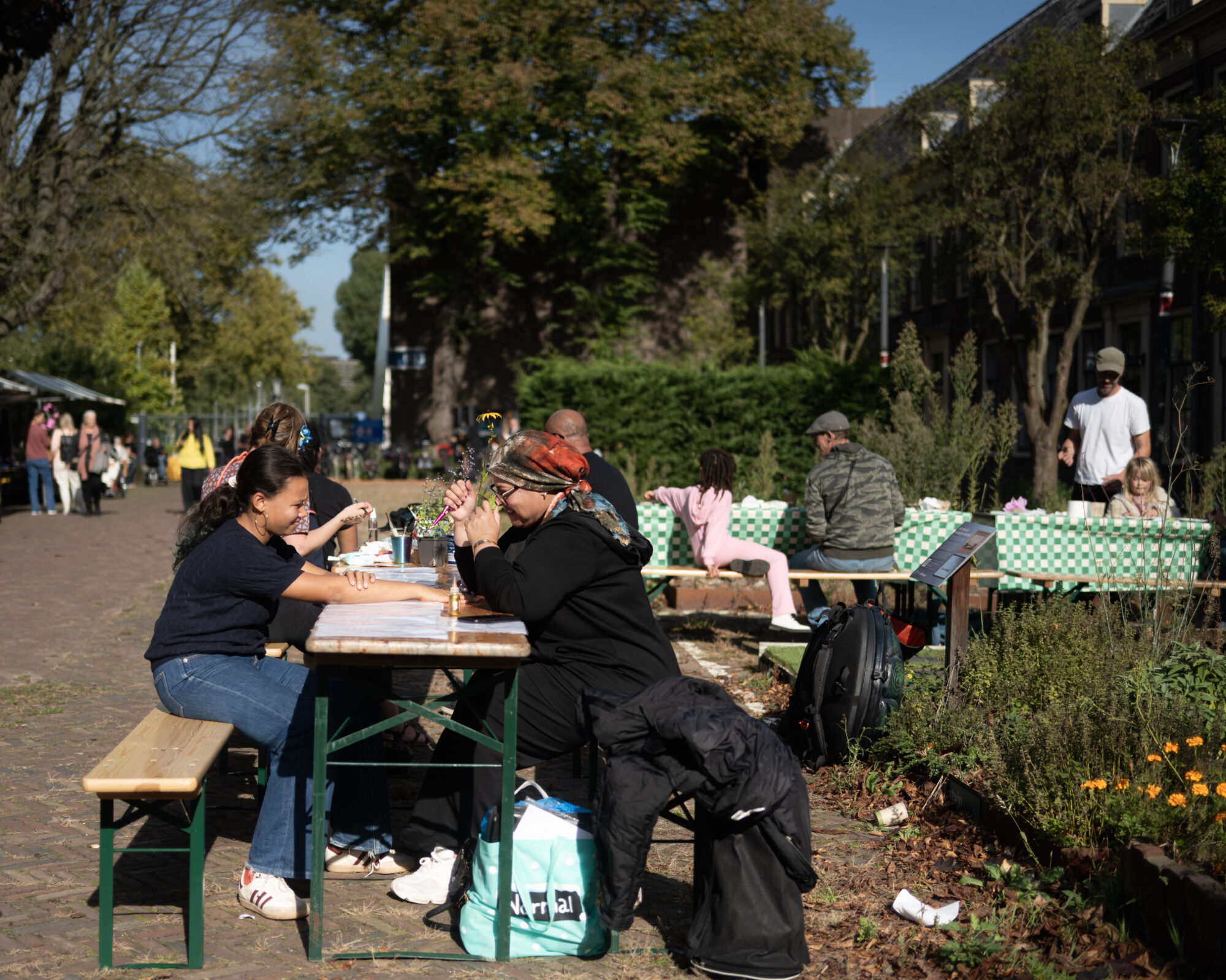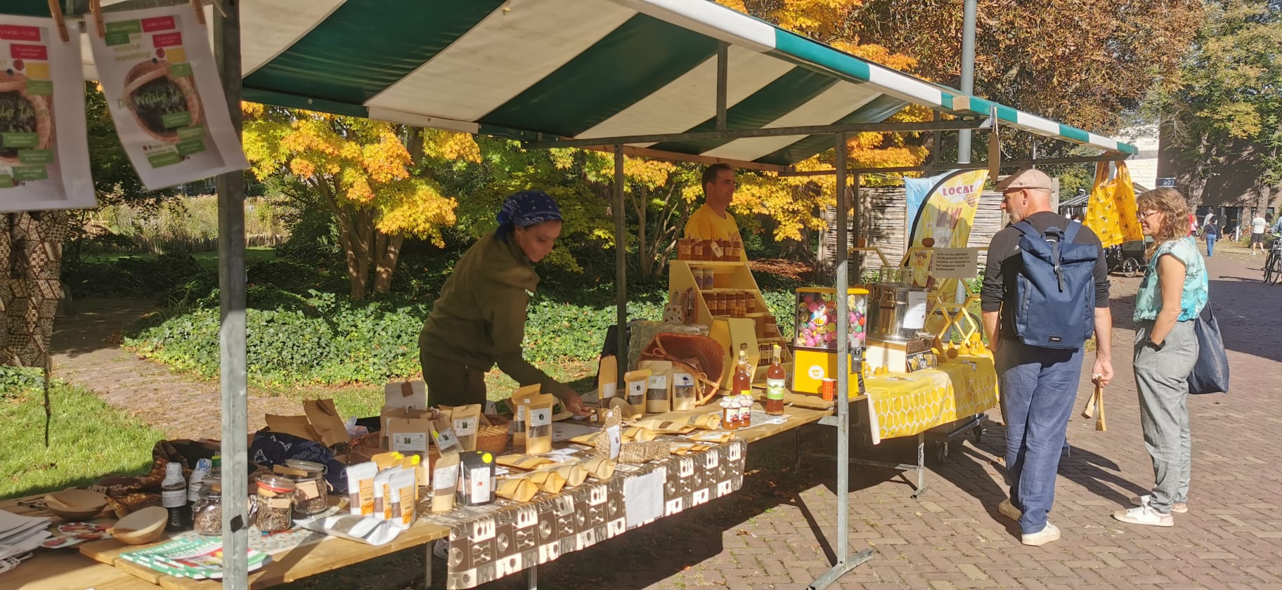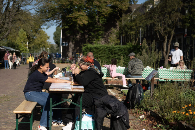 Eten en persoonlijke verhalen vormden opnieuw een belangrijk onderdeel van de Groenmarkt. Bij de honingman proefden bezoekers honing van bijen die op de daken van gemeentelijke gebouwen worden gehouden. Stichting Stichting Aaneen verkocht Surinaamse thee en bood eerlijke producten met een sterke sociale betekenis. Daarnaast waren er de kleurrijke bloemencreaties van Rea die met bijzondere vouwtechnieken uit de Filipijnen duurzame kunstwerken maakt. Ook aan gastvrijheid ontbrak het niet: het Dok Buurthuis reed rond met een vrolijke kar vol koffie, thee en koekjes die gratis werden uitgedeeld. Een klein gebaar met groot effect.
